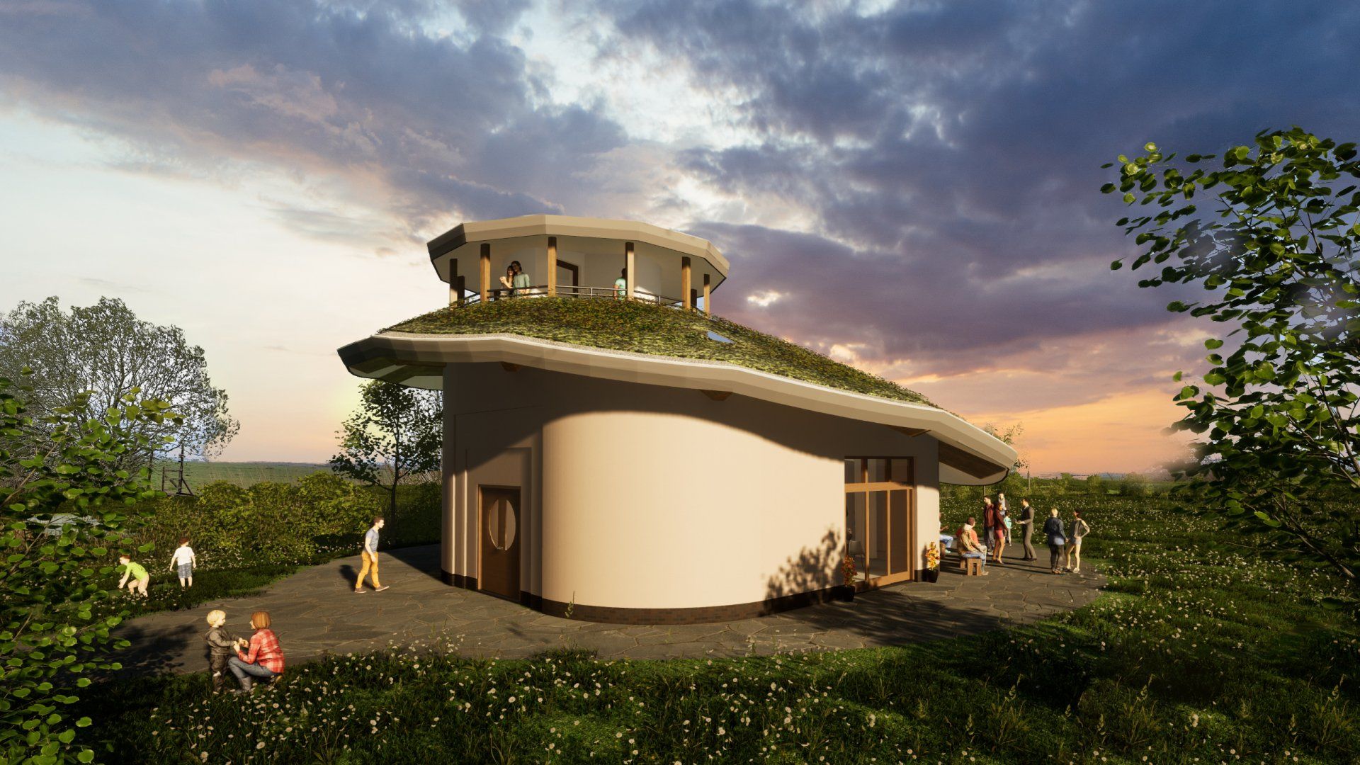 Het gebouw wordt gemaakt van biologische en duurzame materialen.